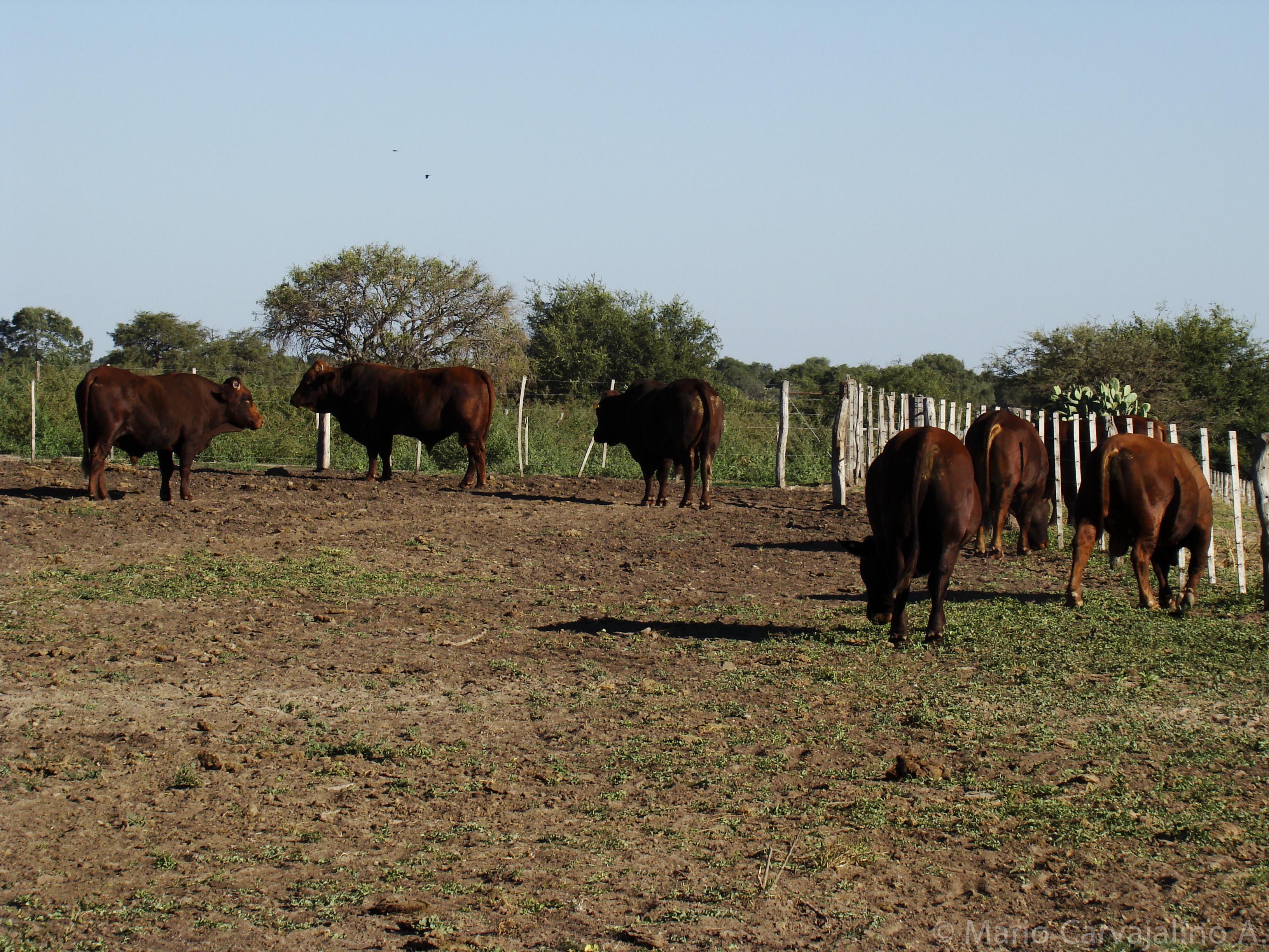 Don Alfredo Estevez Gerente de El Mangrullo nos acogió con la tradicional hospitalidad argentina y el Sr. Lizzi nos alojó en la bella casa ancestral de la hacienda. El clima ardiente pero seco. Llevaban 10 años con la raza Bonsmara y habían encontrado que el cruce con Angus Rojo, a nivel de F1 les aportaba especial adaptación a los rigores del norte argentino. Visitamos los principales grupos de animales y pudimos hacer todas las preguntas que teníamos sobre adaptación de la raza, peso de las crías al nacer, edad del destete, precocidad, pesos esperados a diferentes edades, edad y peso para el primer servicio, comportamiento al parto, habilidad materna, mastitis etc. etc.